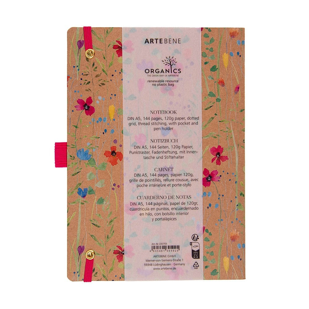 ARTEBENE - Notebook with Elastic Closure A5 | Dotted Pages | Wild Blossoms