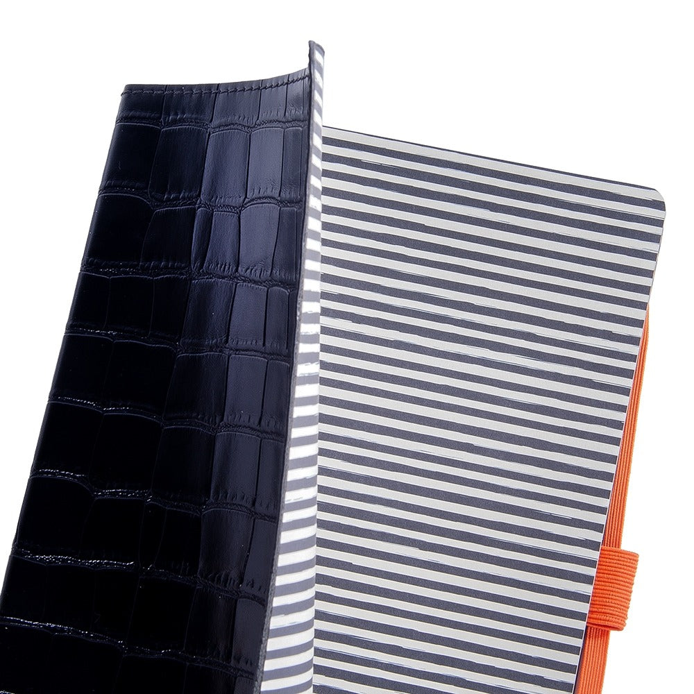ARTEBENE - MAJOIE Notebook with Elastic Closure A5 Vegan Leather Croc | Dotted Pages | Black