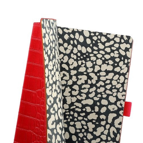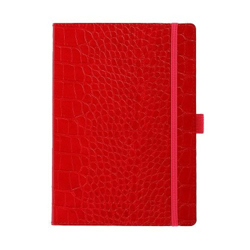 Cuaderno A5 con 144 páginas de puntos de 120gr, portada de piel vegana con efecto cocodrilo.