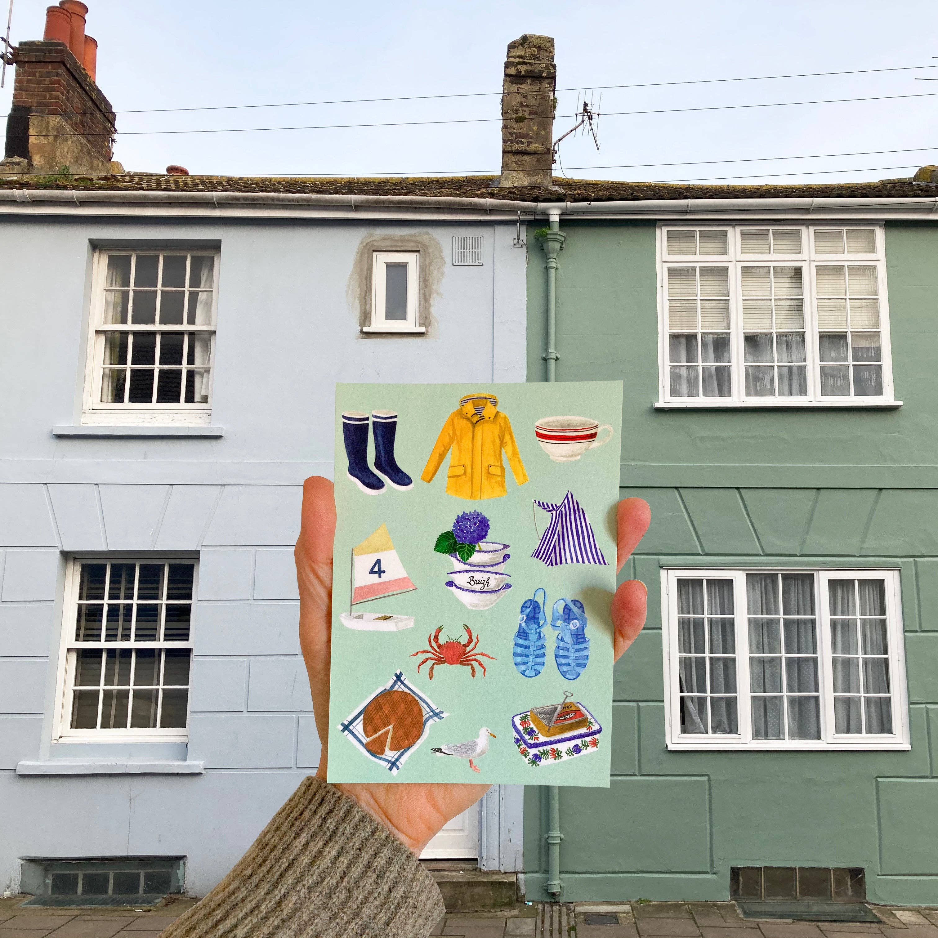 Pintadas a mano en su taller en Normandía con gouache o acuarela, estas imágenes evocan la belleza de lo simple y lo cercano, celebrando los detalles que a menudo pasan desapercibidos. Su estilo es delicado, contemplativo y profundamente conectado con el arte del día a día.