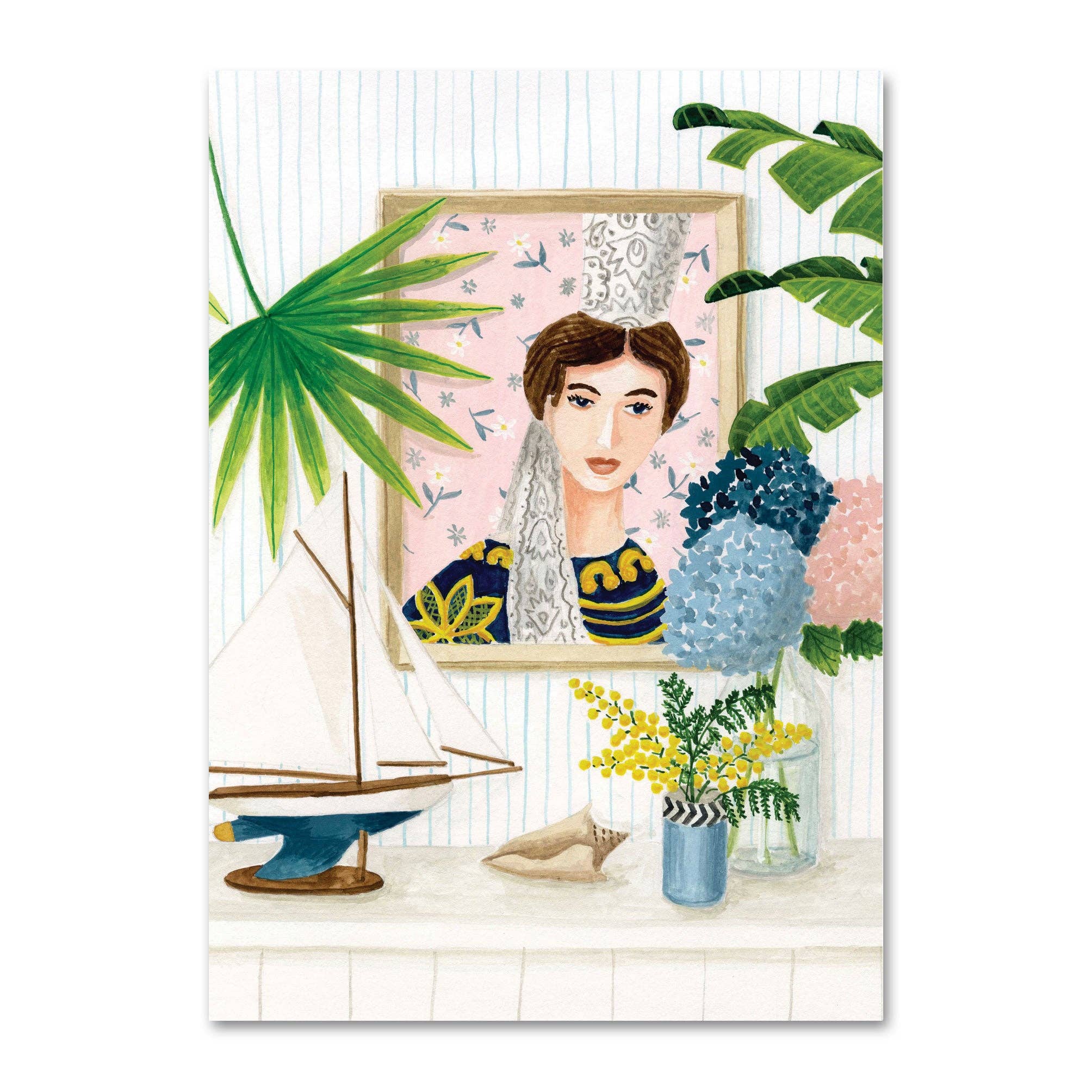 Las postales ilustradas de Mélanie Voituriez son pequeñas obras de arte que transmiten calma, sensibilidad y una estética profundamente poética. Diplomada en diseño textil en París y apasionada por la decoración, Mélanie compone cada ilustración como un patchwork emocional: fragmentos de naturaleza, objetos cotidianos, arquitectura y motivos textiles se entrelazan en escenas llenas de serenidad.