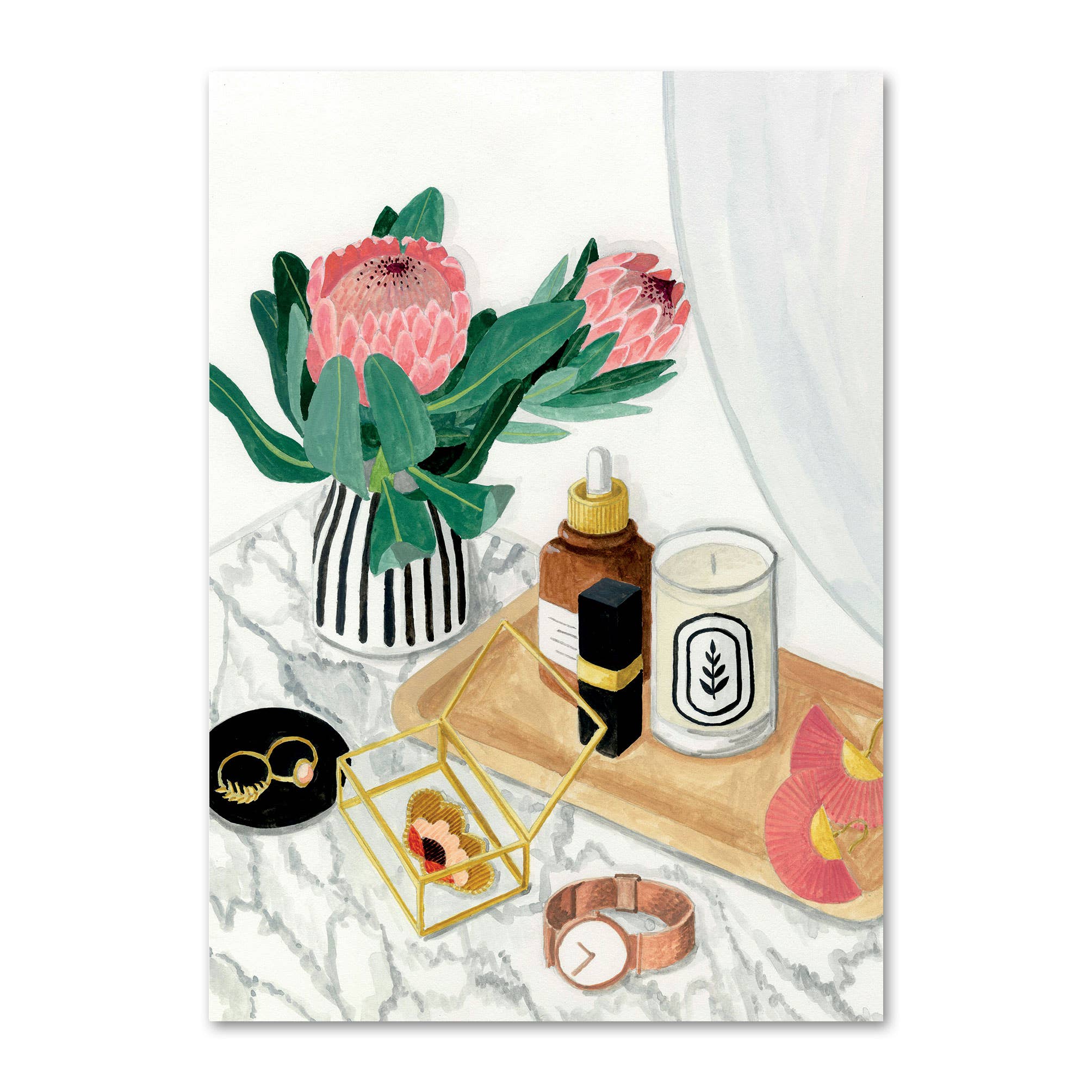 Pintadas a mano en su taller en Normandía con gouache o acuarela, estas imágenes evocan la belleza de lo simple y lo cercano, celebrando los detalles que a menudo pasan desapercibidos. Su estilo es delicado, contemplativo y profundamente conectado con el arte del día a día.