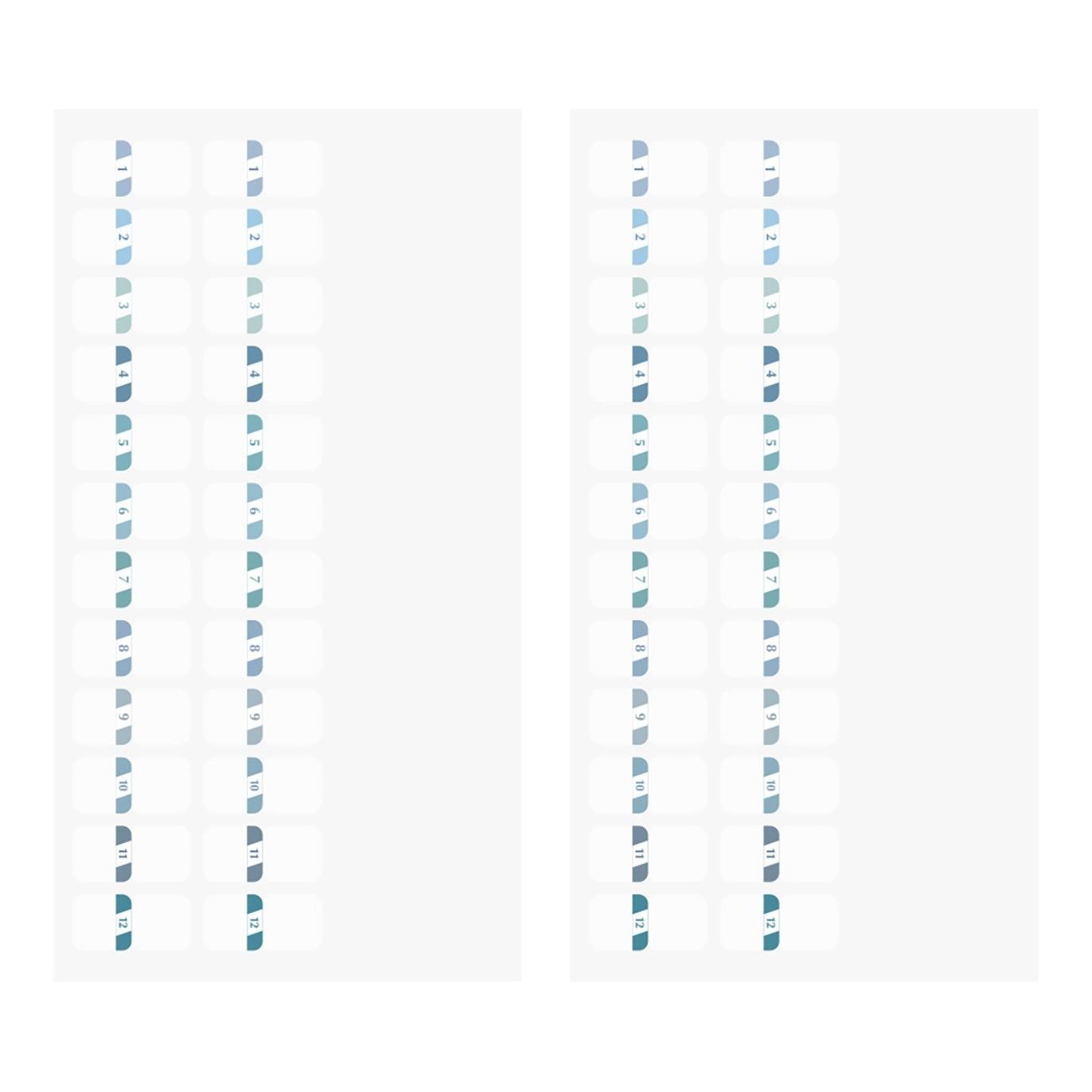 These labels feature a matte finish in blue tones with a distinctive number design. Made from PET, their composition ensures durability, while their functionality allows the tabs to visually integrate within the cover of any notebook or diary.
