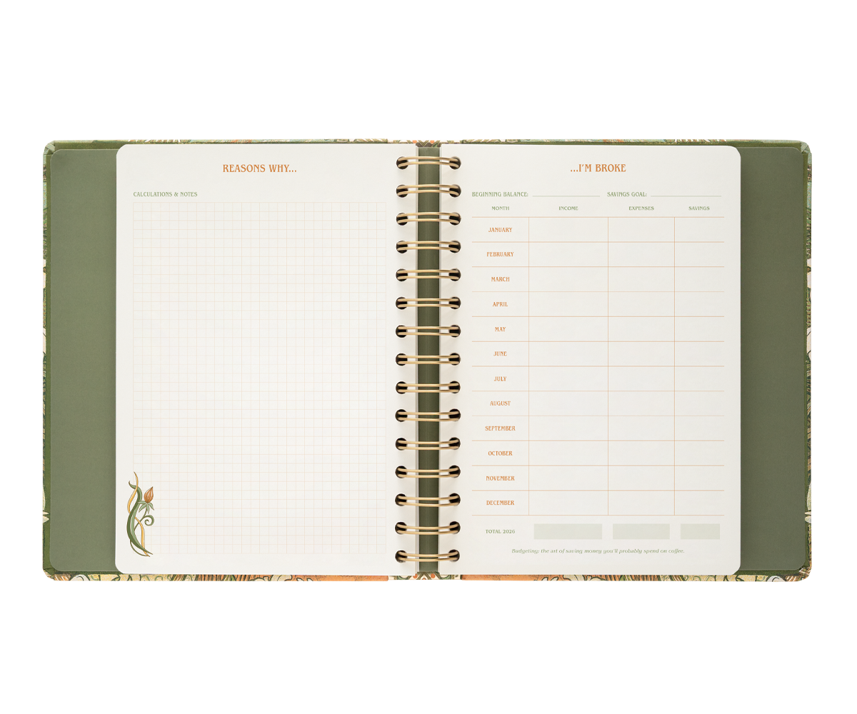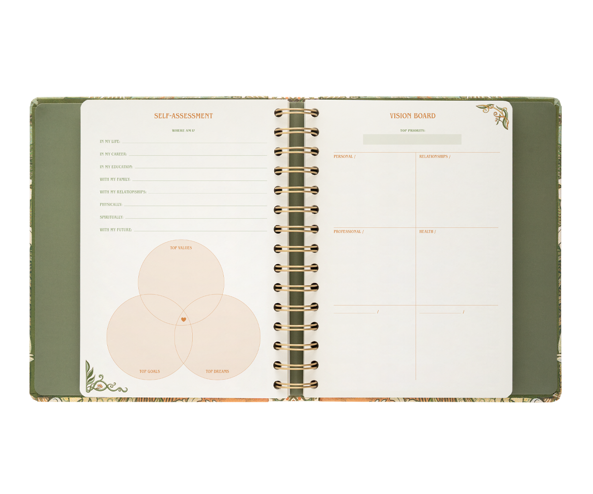 Inside you'll find a vision board, budget planner, schedules, deadline tracker, monthly priorities with habit tracking, monthly planner, 8 note pages, and an art checklist.