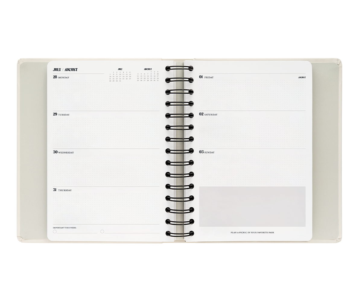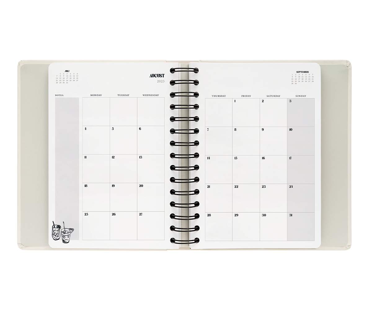 17-month weekly academic planner, from August 2025 to December 2026. Measures 16.5 x 20 cm, slightly larger than A5.