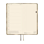 El interior está impreso en papel Tomoe River, fino pero resistente, que ofrece una experiencia de escritura suave y de alta calidad. Además de las páginas semanales, incluye calendario anual, planificador mensual, páginas especiales y espacio adicional para notas al final del cuaderno.