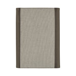 La funda combina dos tejidos con texturas y orígenes distintos: poliuretano gris ahumado de acabado suave y una tela acrílica fabricada en España, de tacto más rústico. El contraste entre ambos materiales aporta profundidad y elegancia.