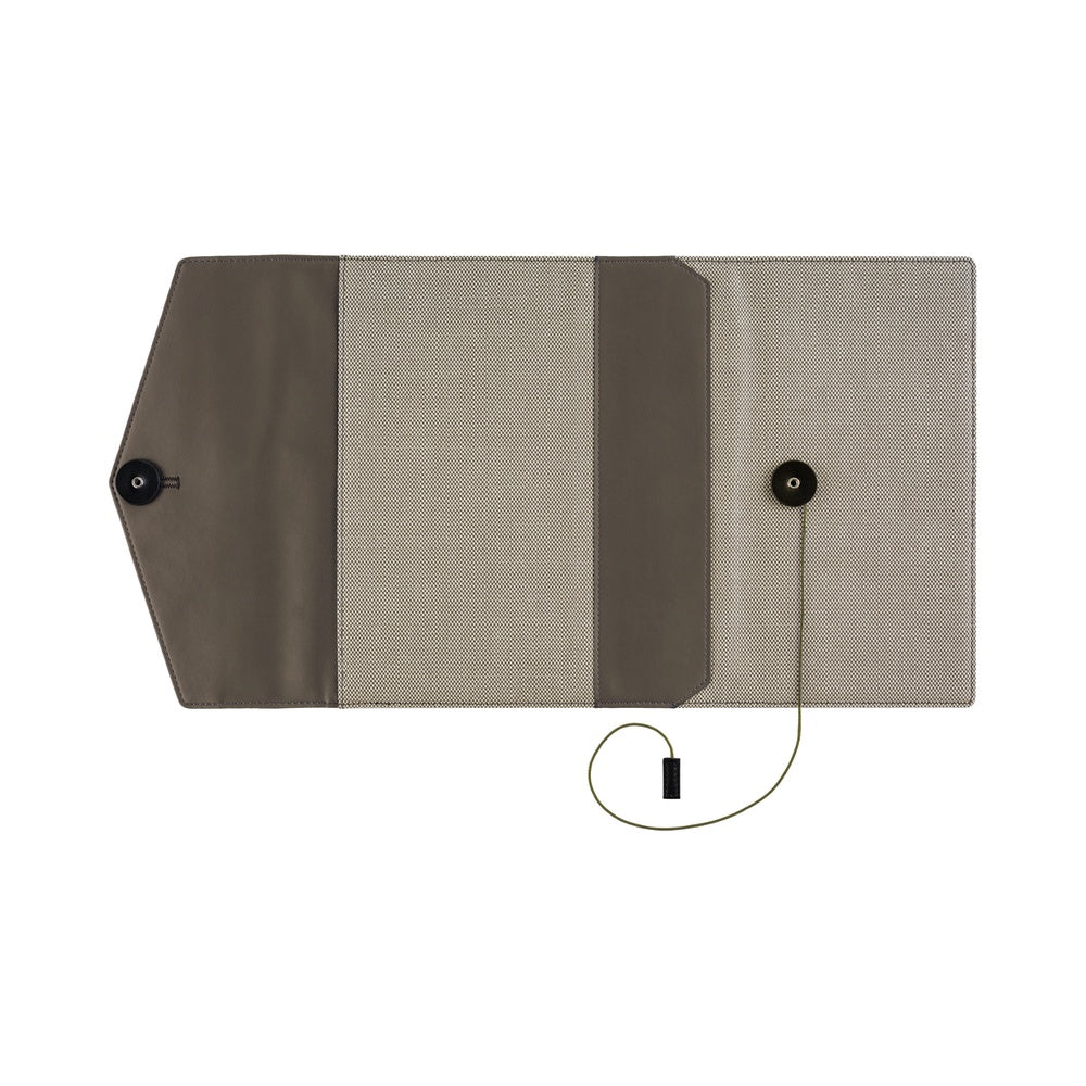 La funda “Letter” para  Hobonichi Techo Cousin A5  evoca la calidez y la intimidad de escribir una carta a mano. Su diseño tipo sobre, con solapa triangular y cierre de cordón con botón, está pensado para invitarte a pausar, abrir tu cuaderno con calma y reconectar contigo mismo, como quien abre una carta personal.