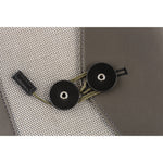El botón redondo y los extremos del cordón están fabricados en piel auténtica. El cordón, en tono verde caqui, puede enrollarse de forma sencilla o cruzada, añadiendo un gesto estético al acto de abrir y cerrar.