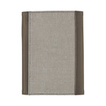 La funda combina dos tejidos con texturas y orígenes distintos: poliuretano gris ahumado de acabado suave y una tela acrílica fabricada en España, de tacto más rústico. El contraste entre ambos materiales aporta profundidad y elegancia.