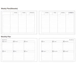 • 58 semanas en formato perpetuo: Comienza cuando quieras o úsalo de forma esporádica. Las semanas se presentan en doble página, con una columna para lista de tareas y una columna para cada día de la semana, incluyendo sábados y domingos, todas con el mismo espacio.