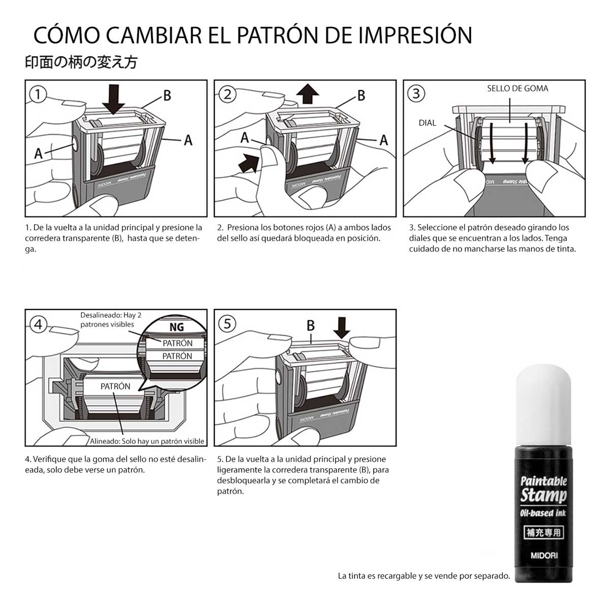 • Incluye una almohadilla con tinta negra a base de aceite.