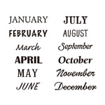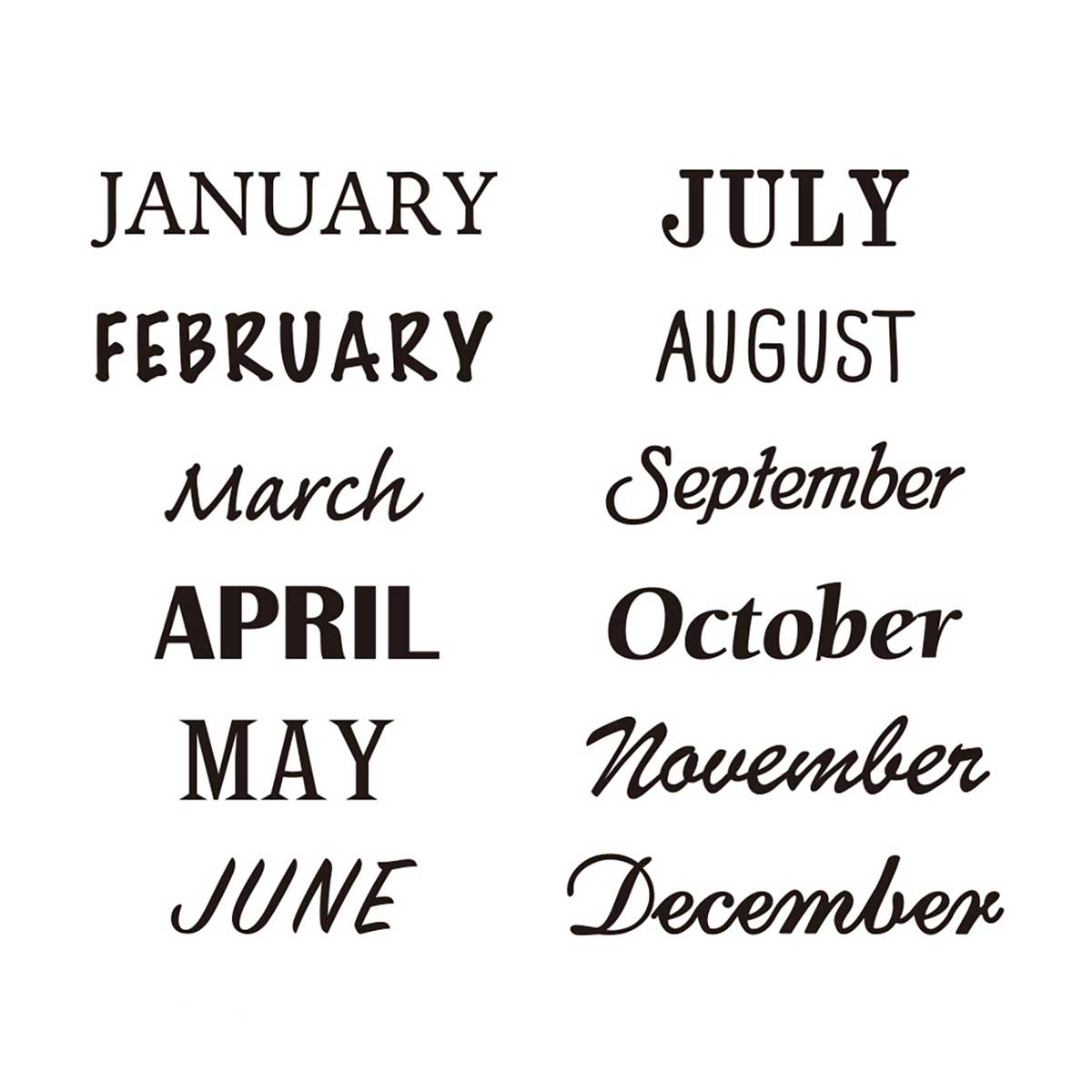 Este sello giratorio te permite poner cada mes del año simplemente girando el dial, incluye los 12 meses del año cada uno en una tipografía diferente.
