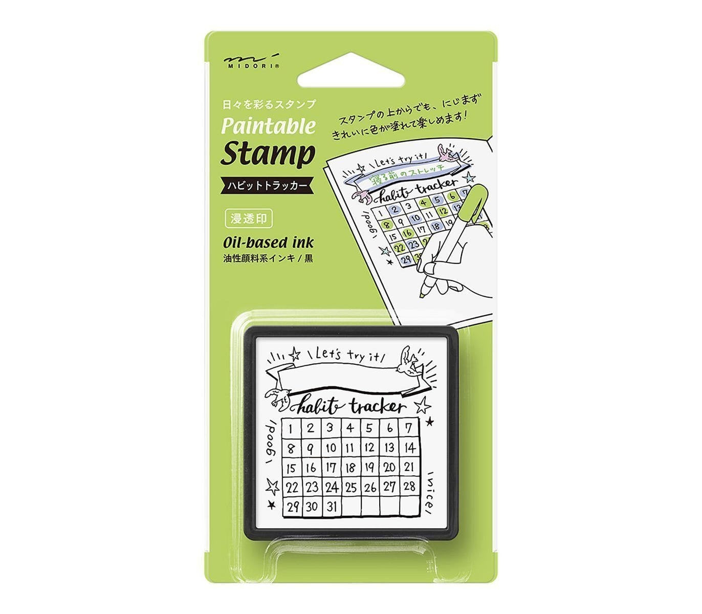 Midori - Paintable Stamp Pre-inked Calender Habit Tracker Sello de Calendario