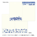 El cuaderno Yuru Log - Blue Nordic te invita a viajar sin moverte del escritorio. Con una estética acogedora en tonos azul índigo y un aire nostálgico, cada doble página está ilustrada con escenas que evocan la calidez de una cabaña nórdica, tardes de fika, mercados de pulgas o paisajes nevados. Sus ilustraciones suaves y detalladas crean una narrativa visual que inspira a documentar tus días, ideas creativas o recuerdos especiales.