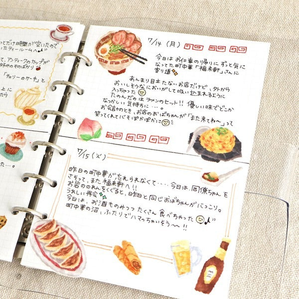 La serie Throbbing Stickers de Mind Wave reúne pegatinas con ilustraciones suaves y detalladas que evocan momentos cotidianos llenos de calma. Cada set incluye motivos variados, desde comida casera hasta gatitos, flores, papelería vintage o dulces, todos dibujados con un estilo artesanal que recuerda a las acuarelas. Son perfectas para decorar tu agenda, diario, regalos o proyectos creativos con un aire cálido y melancólico.
