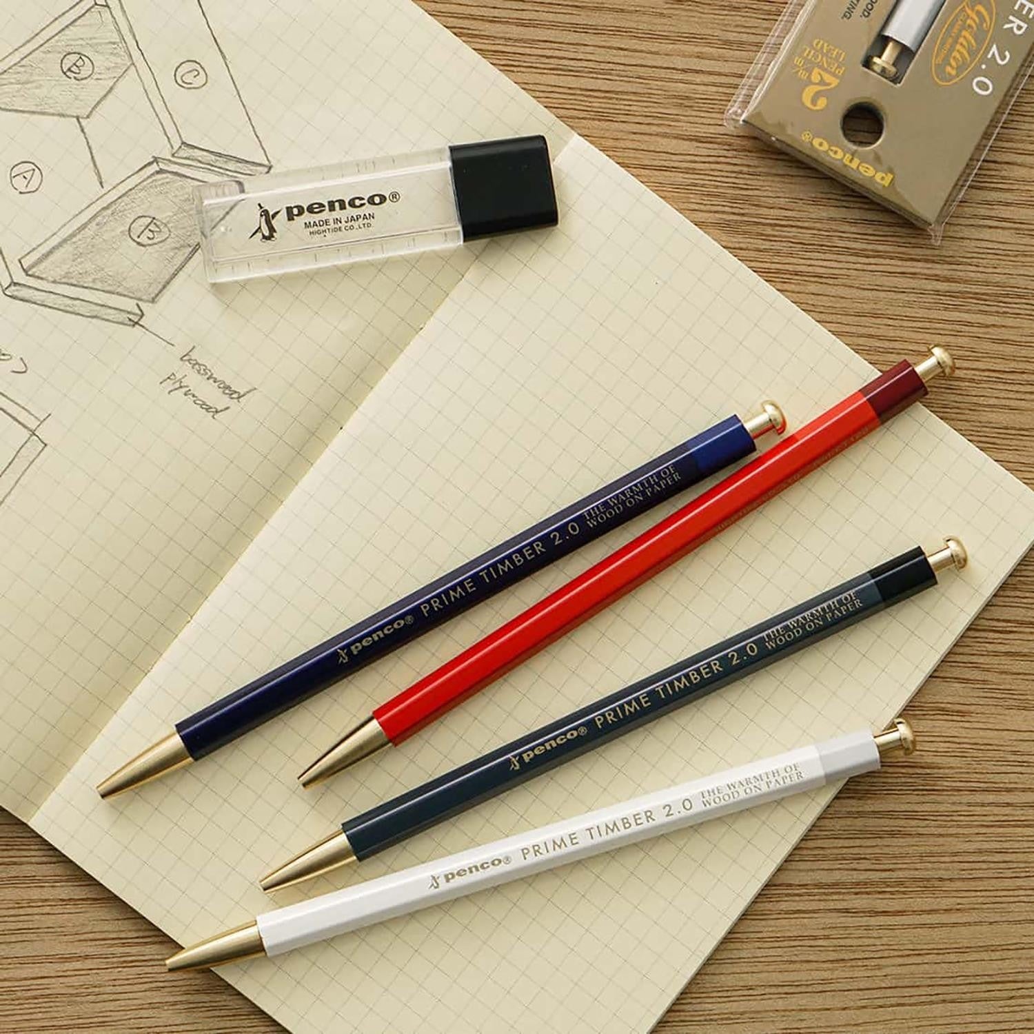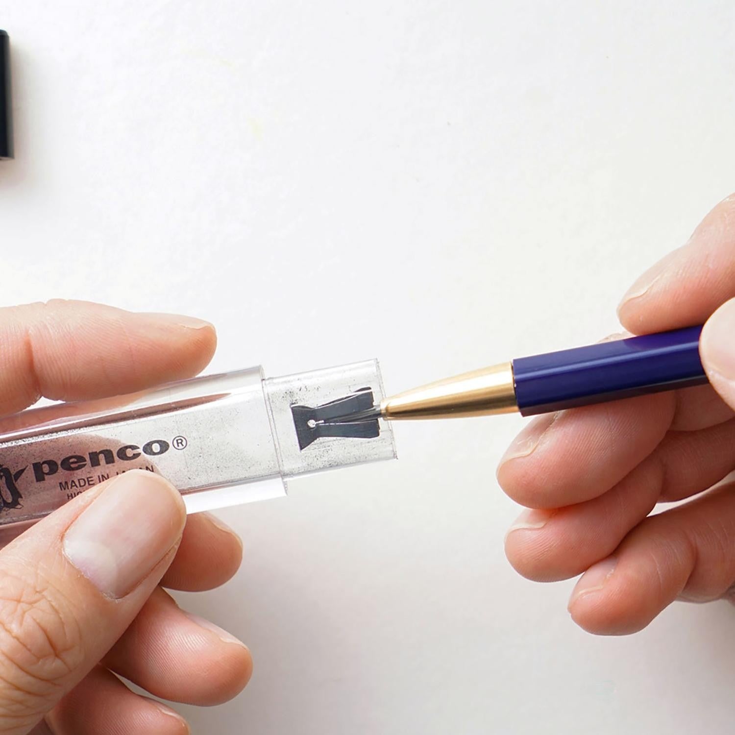 Penco y Kitaboshi Pencil Company se han unido para desarrollar una herramienta de escritura nostálgica pero sofisticada "para adultos". El lápiz se fabrica en Japón utilizando un lujoso cedro de incienso cultivado de forma sostenible en EE.UU.. El grueso núcleo de 2 mm está fabricado con mina y aglutinante japoneses de calidad superior que no contienen impurezas. El cuerpo hexagonal de madera, equipado con accesorios de latón, proporciona un peso equilibrado, en el que la periferia es más pesada que el núcleo. Todos estos factores combinados consiguen una experiencia de escritura suave que es realmente única.