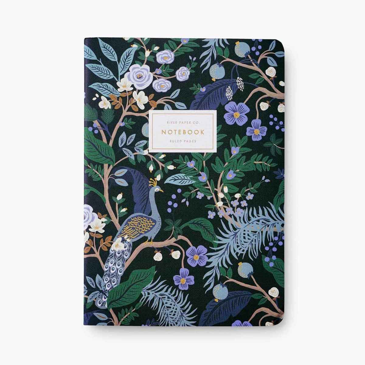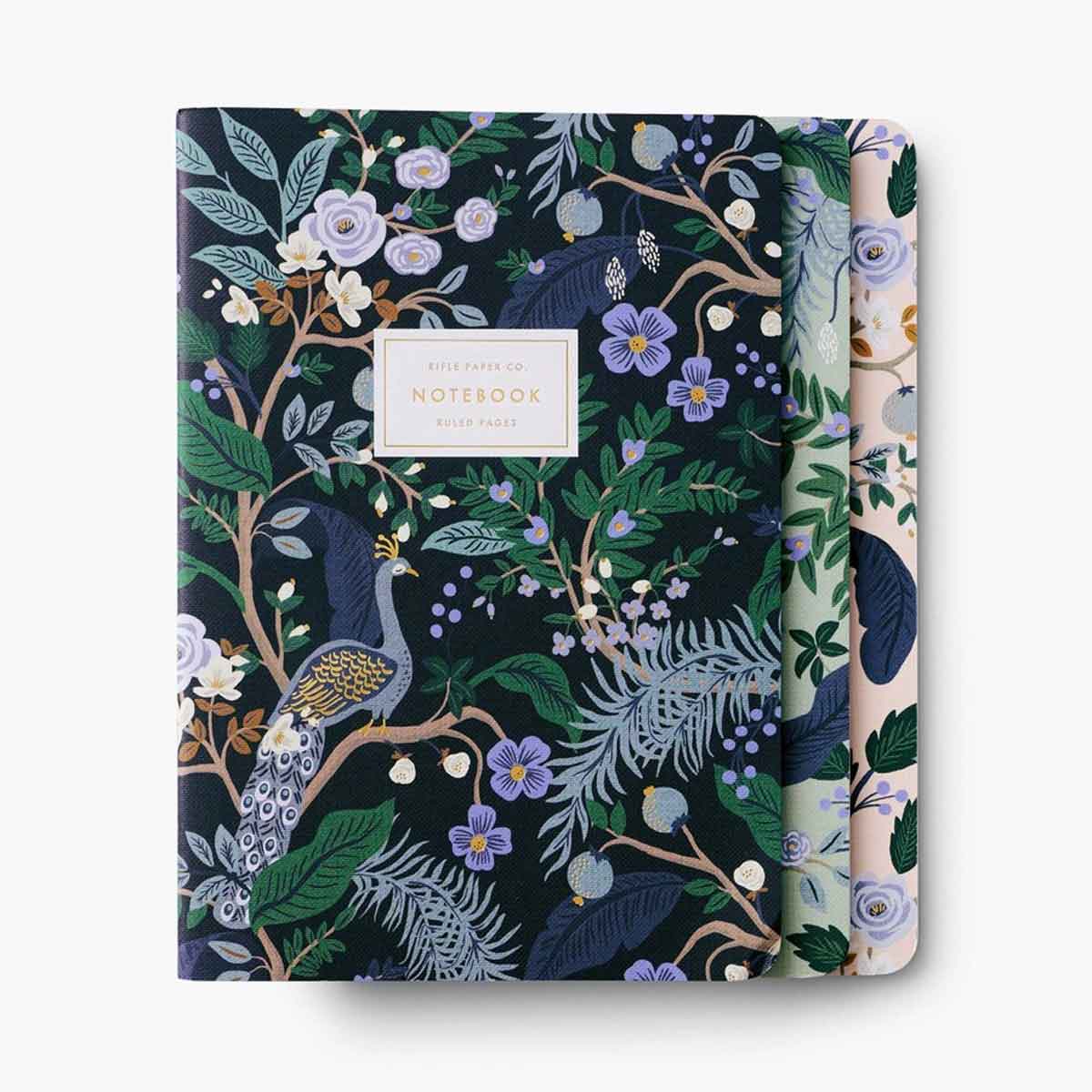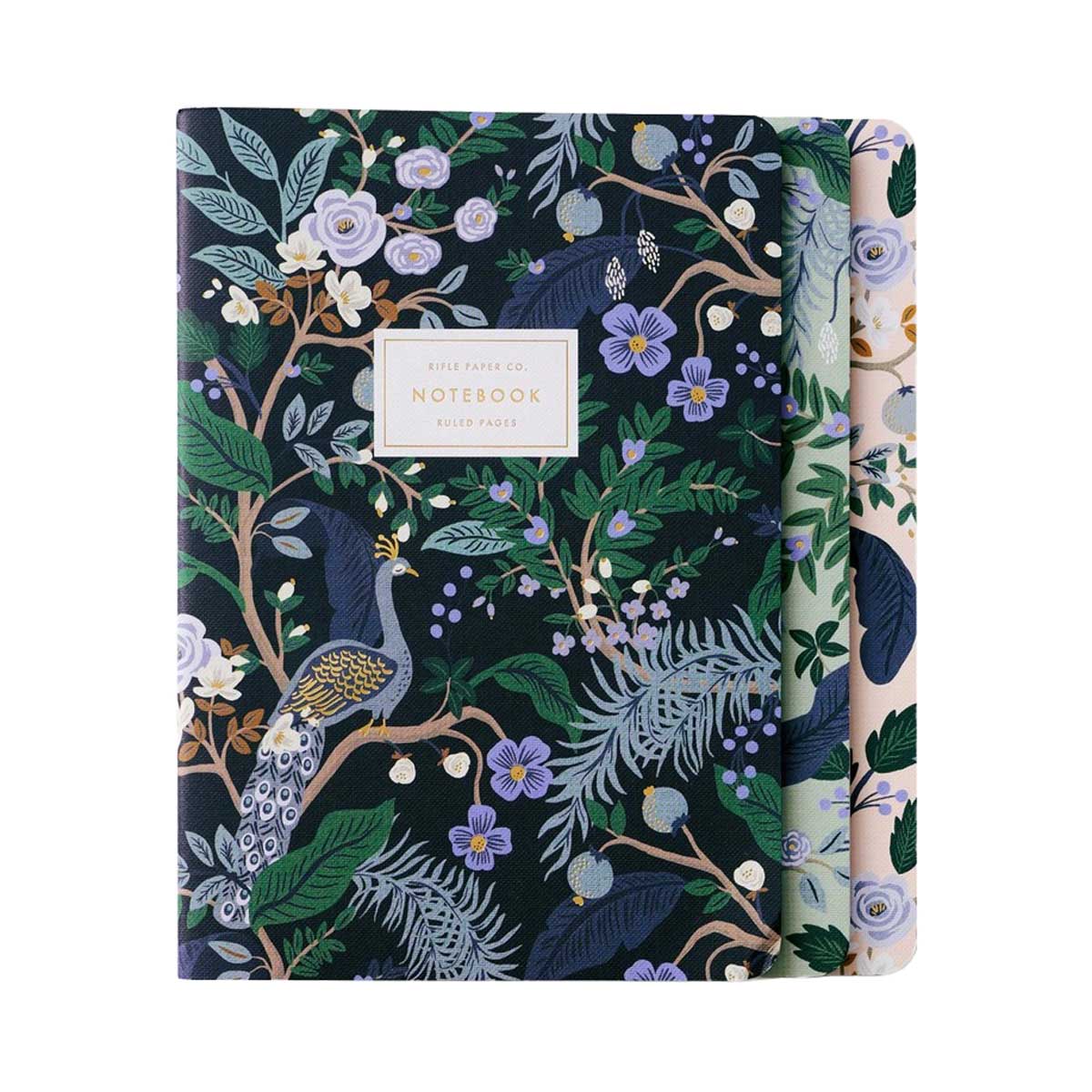 Rifle Paper Co. - Stitched Notebooks Set de 3 Cuadernos | Hojas con Líneas | Peacock