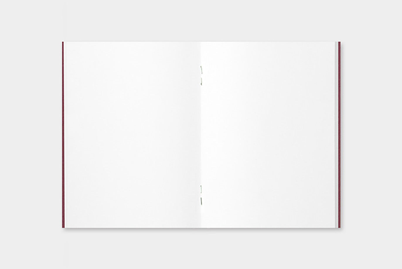 Kit básico del TRAVELER'S Notebook tamaño pasaporte. Incluye una cubierta de cuero, un cuaderno con 64 páginas blancas lisas, una bolsa de algodón para protegerlo y una goma elástica extra.